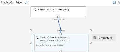 So if you look at the dataset carefully, there are many values missing from the column normalized-losses. So we need to eliminate this column. To achieve this, we can use the Select Column in dataset component as shown below.